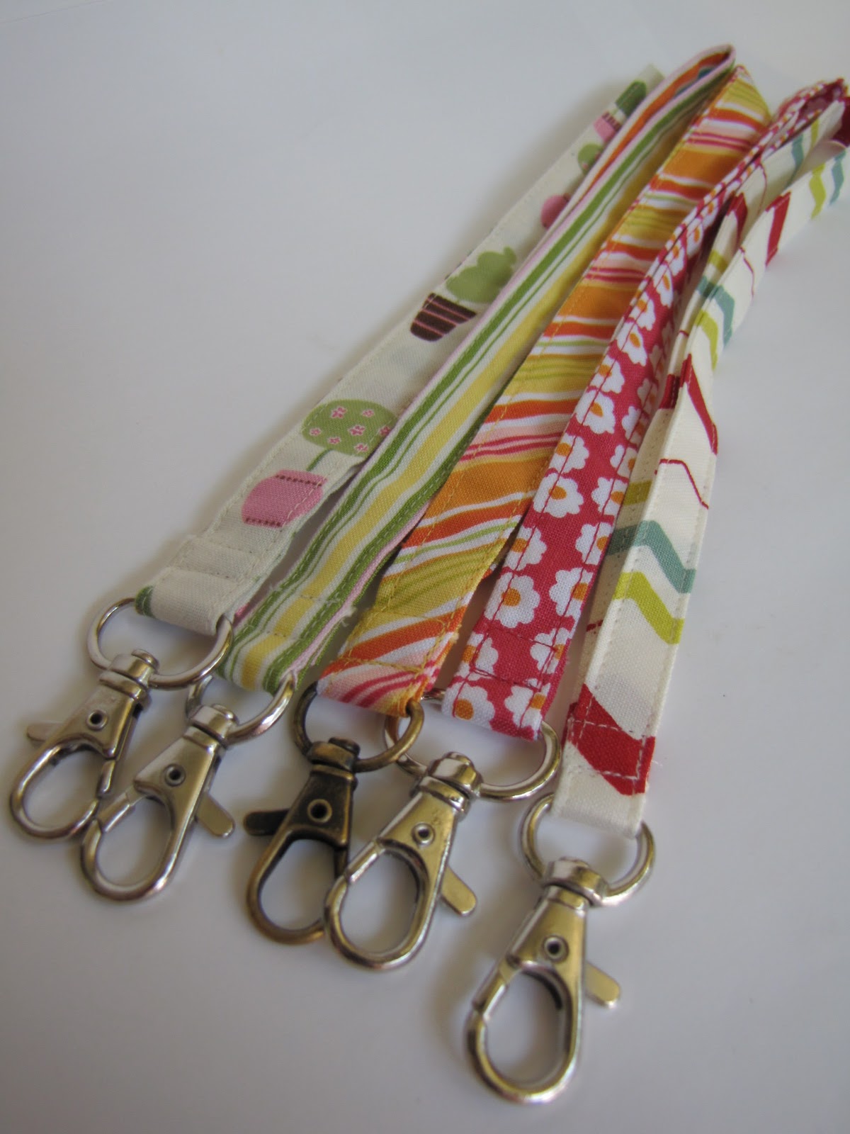 I have a few new things to show you. First are short key chains. At first I only made long ones. Long enough to be worn around the neck, but then I was asked if I could make short ones too, so I did. Here they are: